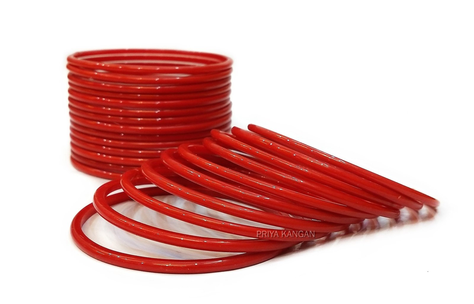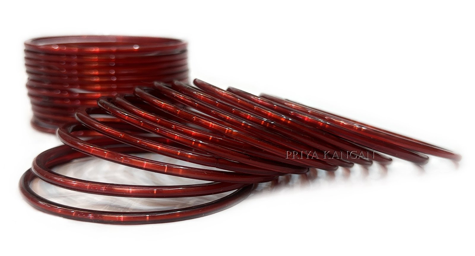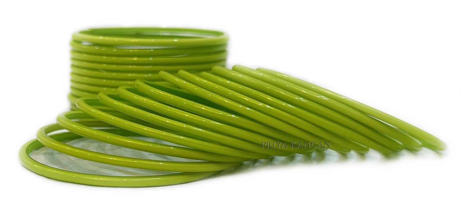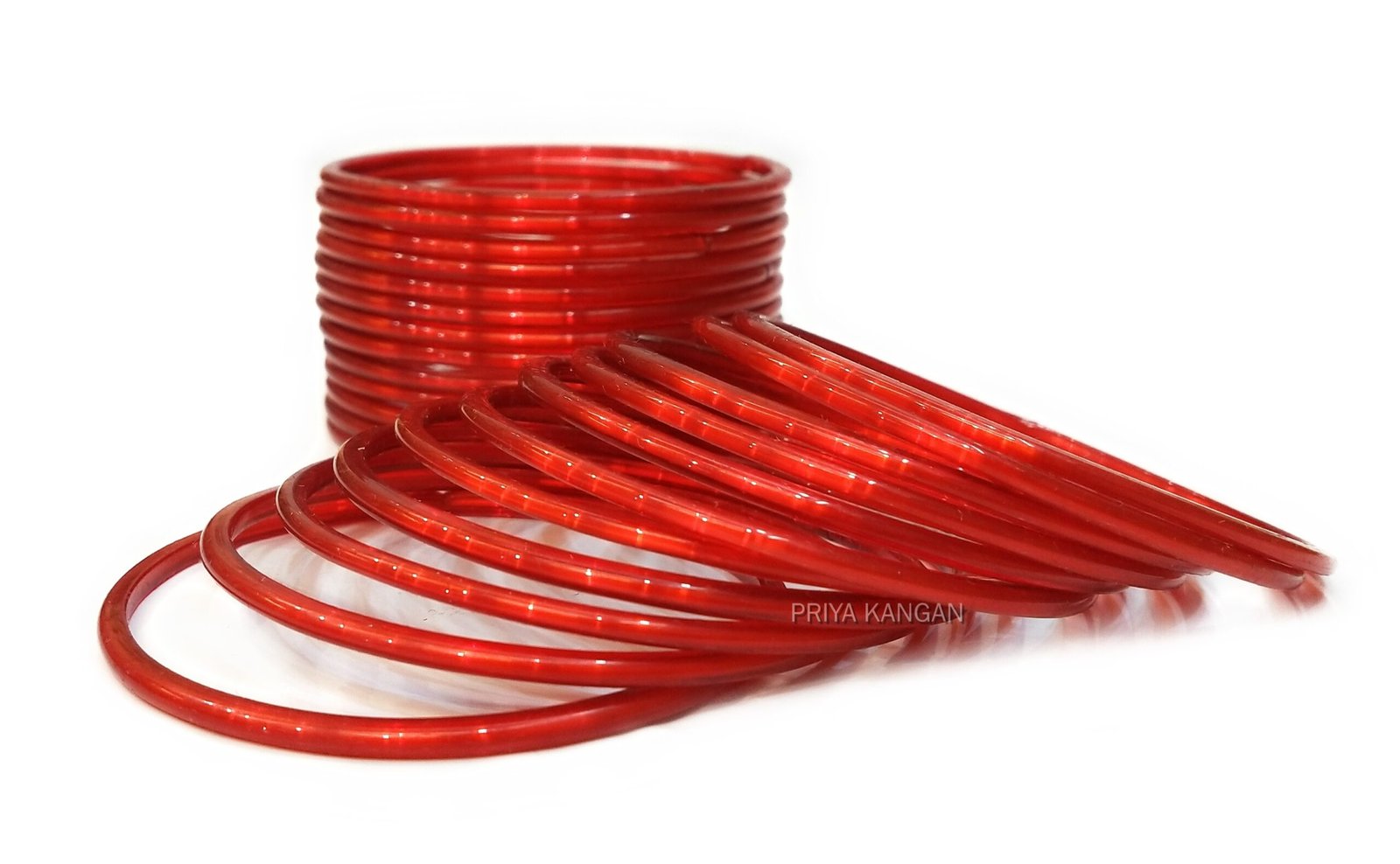 - Finish Type : Glossy, Design : Plain Shiny Glass Bangles, Manufacturing Details : This Glossy Finish Bangles set are made by Experienceholded labour. Pack Of : 48 Bangles.