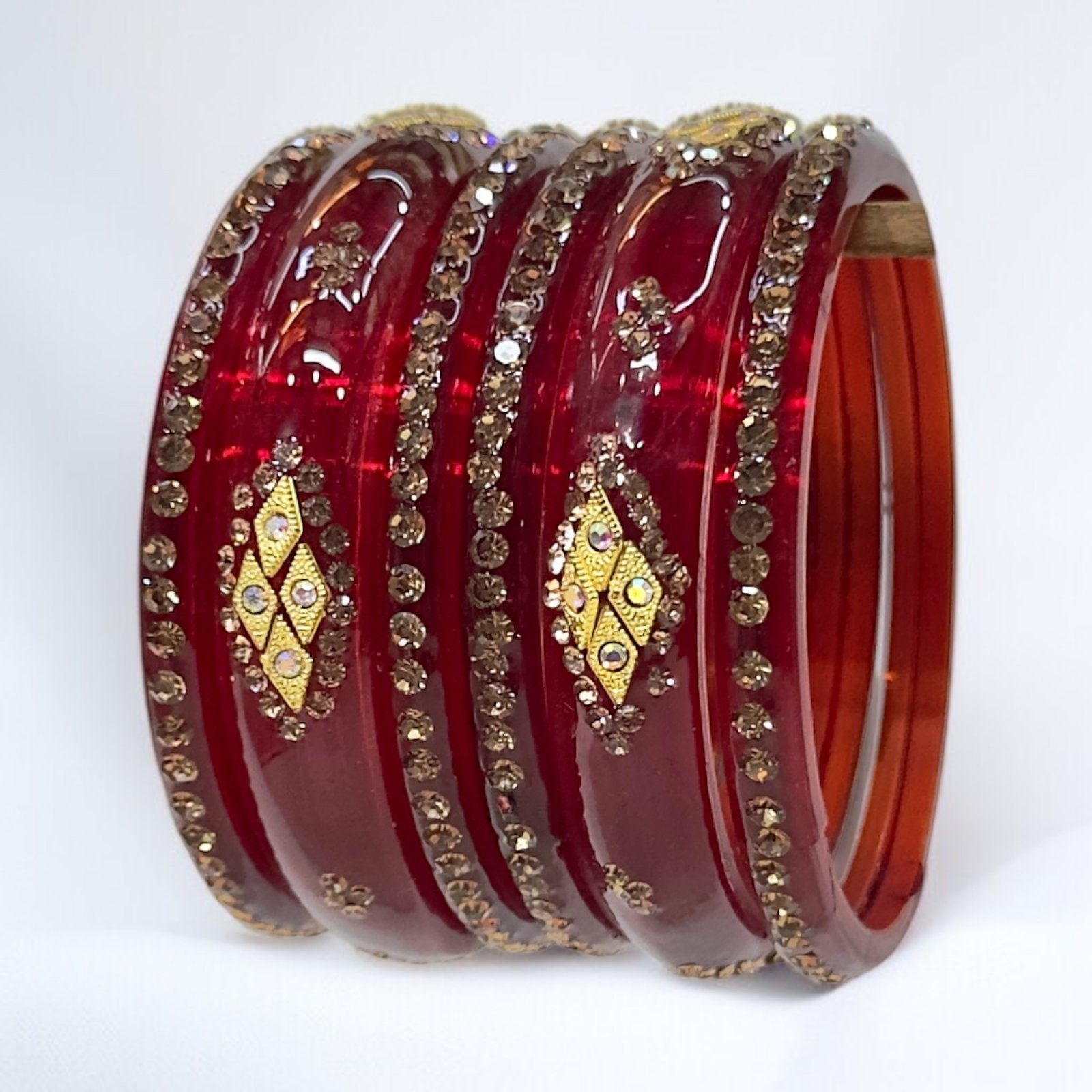 PRIYA KANGAN Presents Premium Quality Glass Bangles Set Studded with Zircon Gemstone for women.